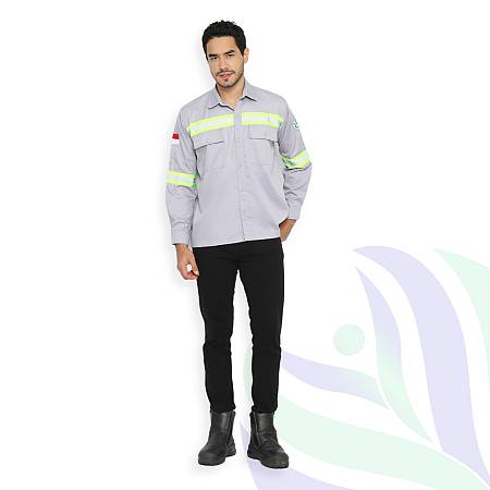 Kemeja Safety Lengan Panjang Abu