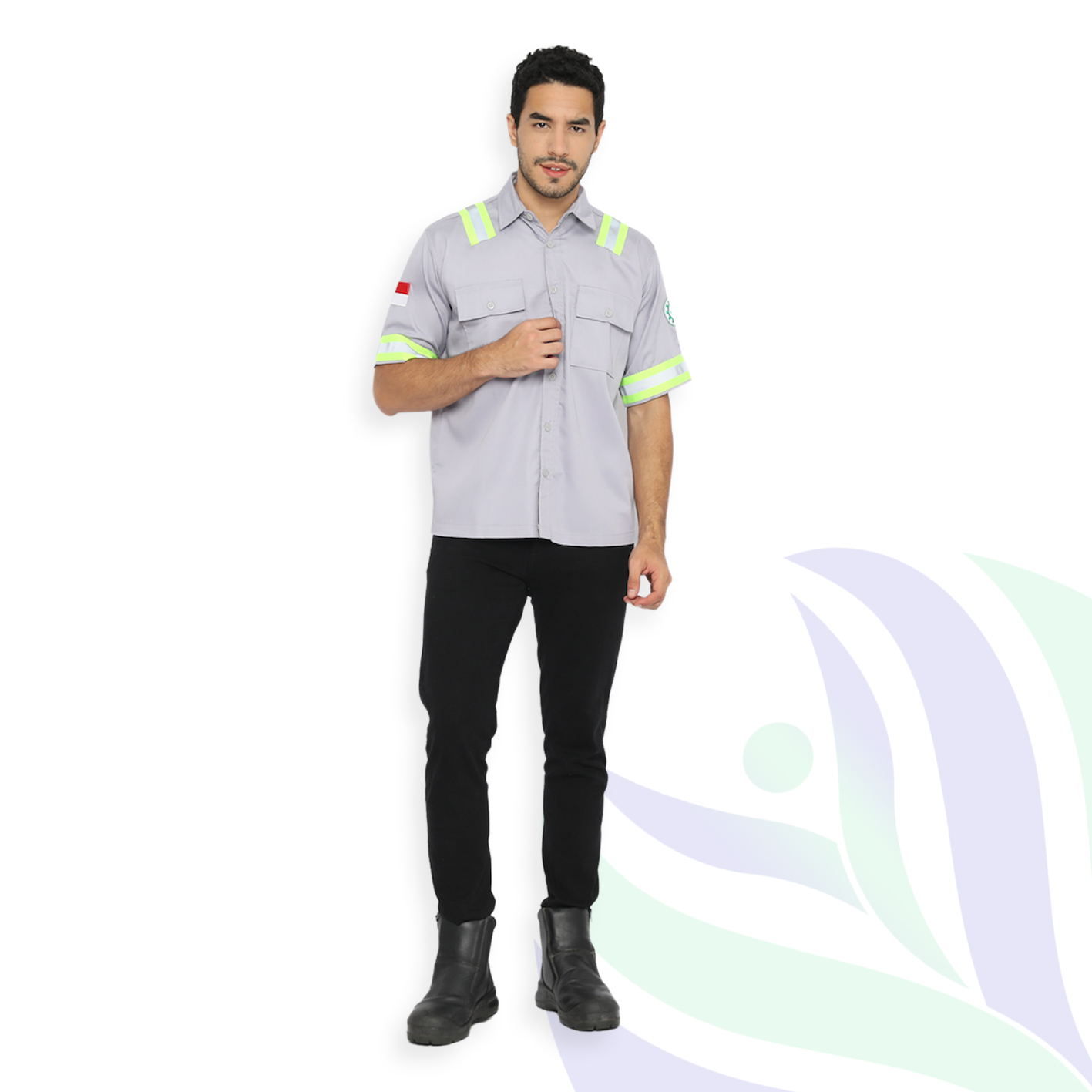 Kemeja Safety Lengan Pendek Abu